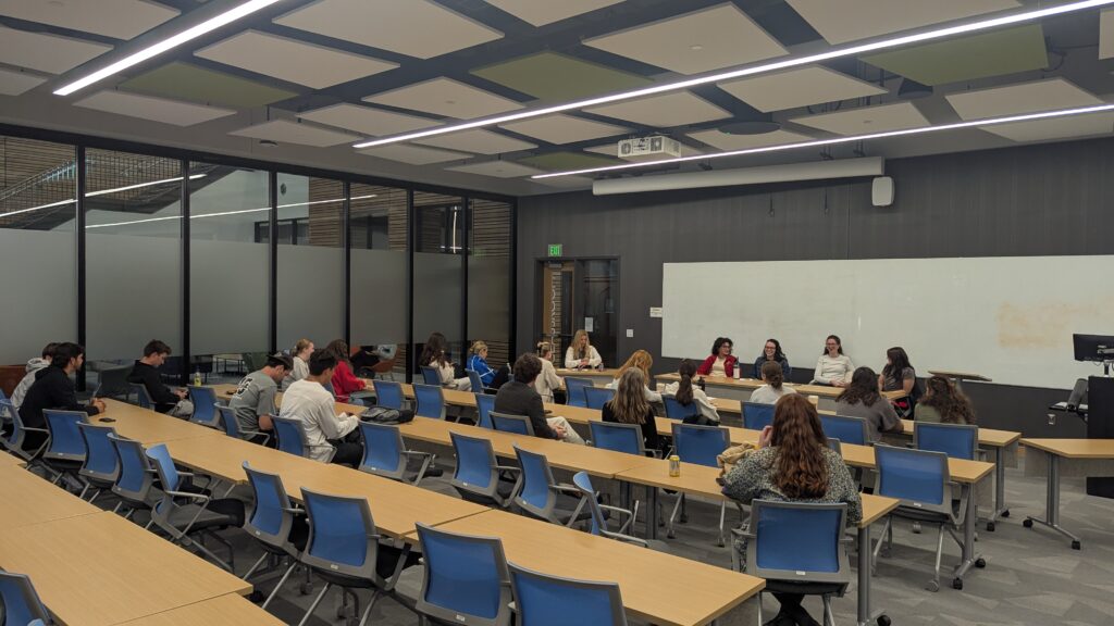 Four Sociology alumni come back to campus for the Fall 2025 Sociology in the Real World lecture, “Advocating for Our Neighbors: A Conversation with PC Alumni.
